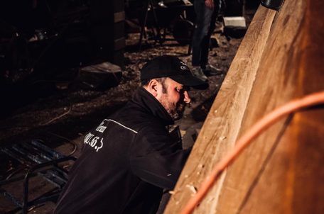 Na het gebruikelijke ritueel, het schoonspuiten van het onderwaterschip, is gestart met het sloopwerk. De afspraak met de werf was dat we zelf het sloopwerk en de afwerking deden, het nieuwe hout werd er door de werf ingezet.